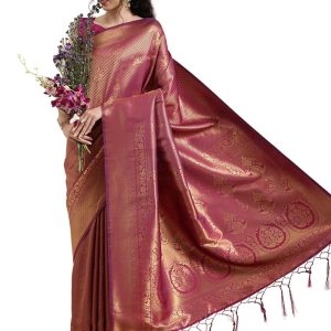 AKHILAM Women’s Zari Woven Design Kanjeevaram Saree With Unstitched Blouse Piece