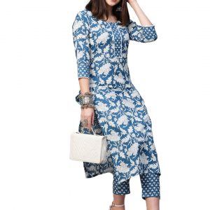 ANNI DESIGNER Women’s Cotton Blend Straight Printed Kurta with Pant