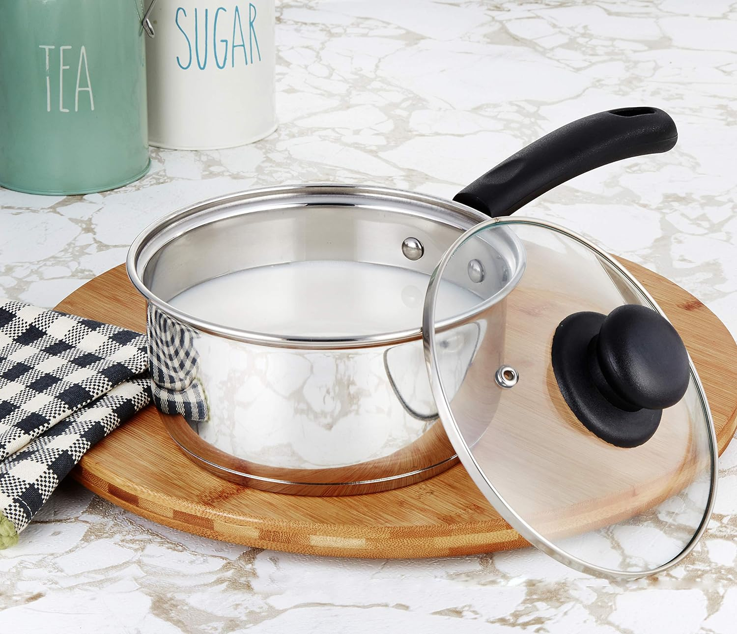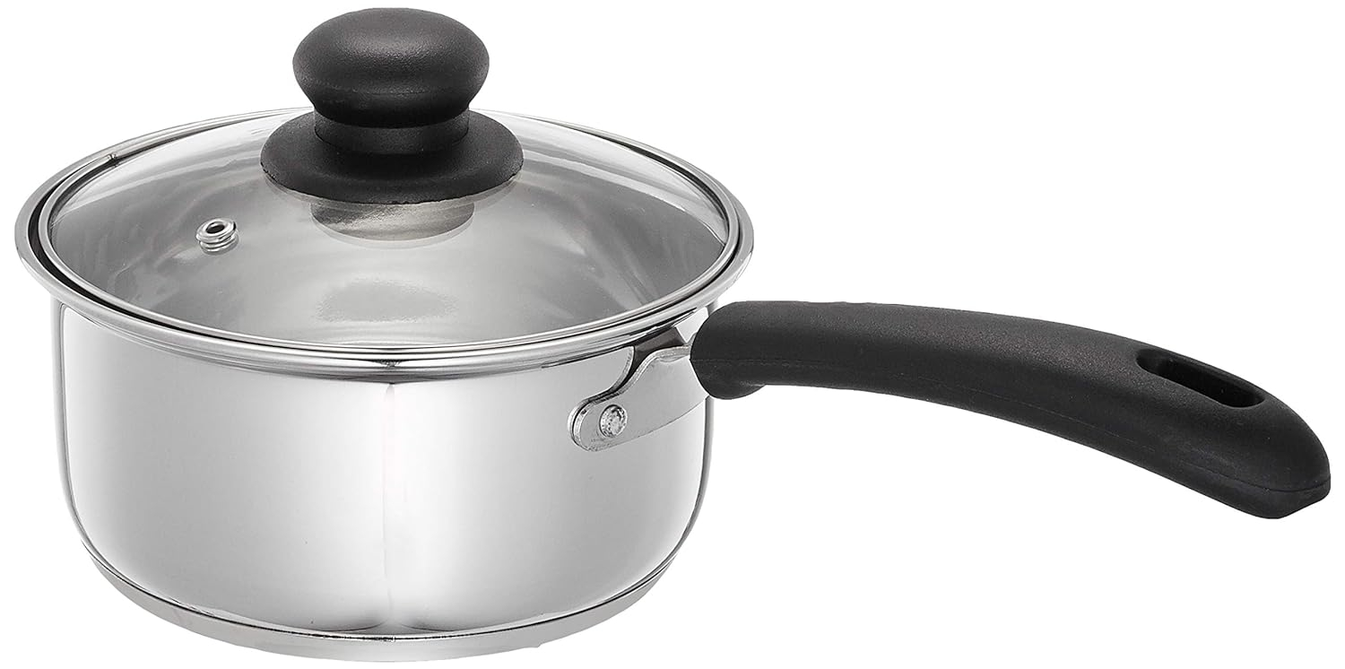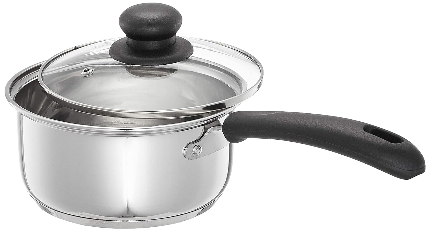 Amazon Brand – Solimo Stainless Steel Saucepan with Glass Lid, Induction Base (16 cm, 1500 milliliters )