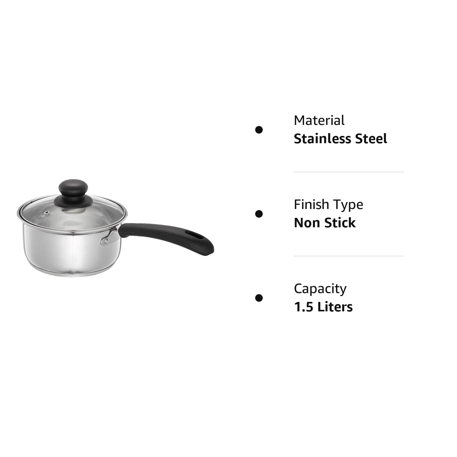 10 reviews for Amazon Brand – Solimo Stainless Steel Saucepan with Glass Lid, Induction Base (16 cm, 1500 milliliters )