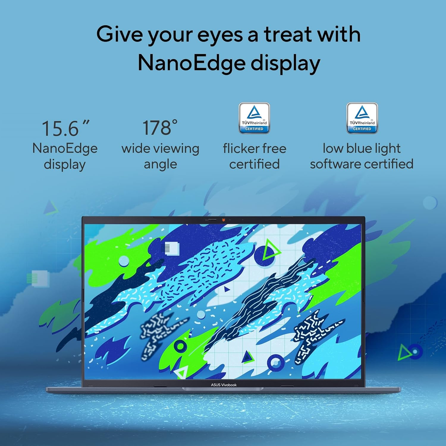 Easy on your eyesGive your eyes a treat with Vivobook 15’s clear, slim-bezel NanoEdge display. It has wide viewing angles, and is engineered for low blue-light levels, reducing the risk of eye strain during marathon viewing sessions. |