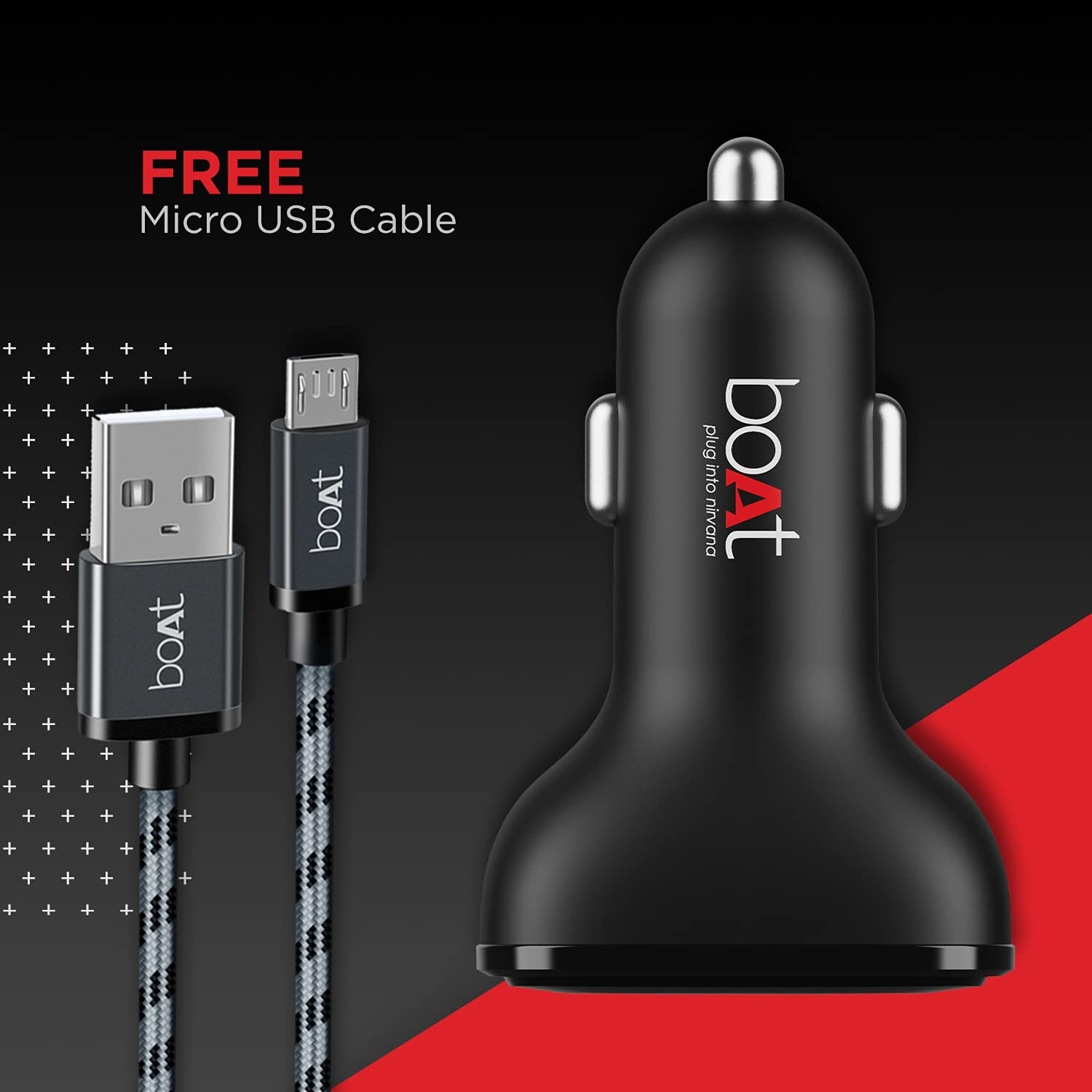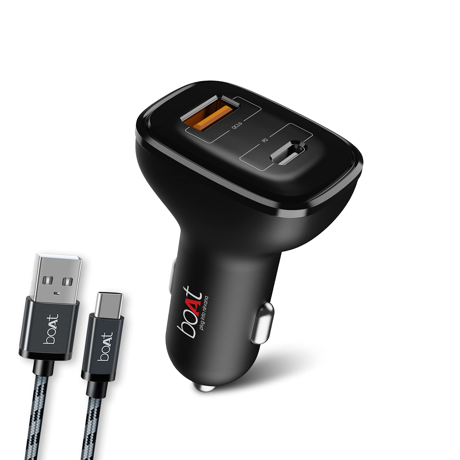 boAt Dual Port Qc-Pd 24W Fast Car Charger with 24W Fast Pd Charging and 18W Qc Charging Compatible with All Smartphones, Tablets and Laptops (Free Type C Cable), Black