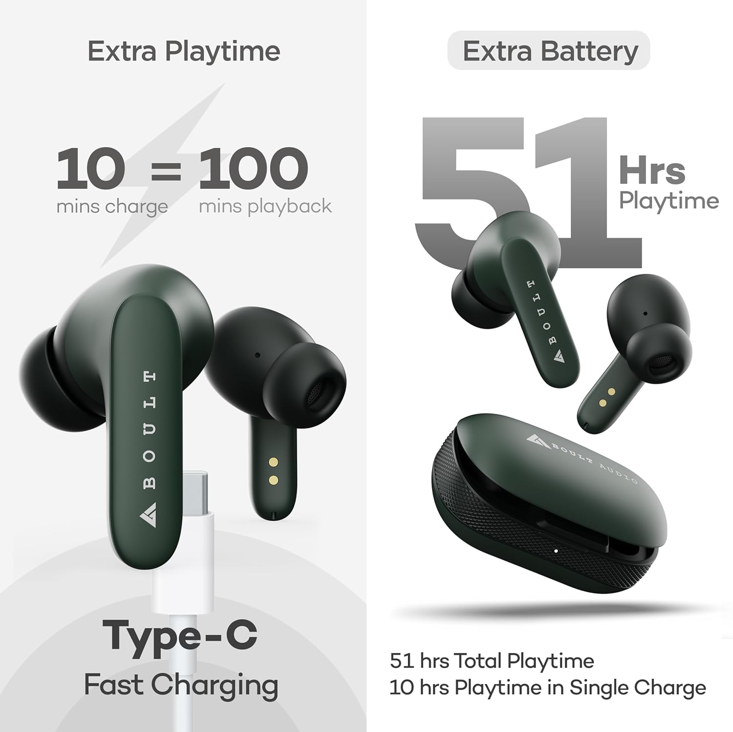 10 reviews for Boult Audio Z20 Truly Wireless Bluetooth Ear buds with 51 Hours Playtime, Zen™ Clear Calling ENC Mic, Made in India, Low Latency Gaming, Rich Bass Drivers, IPX5, TWS earbuds bluetooth wireless (Green)