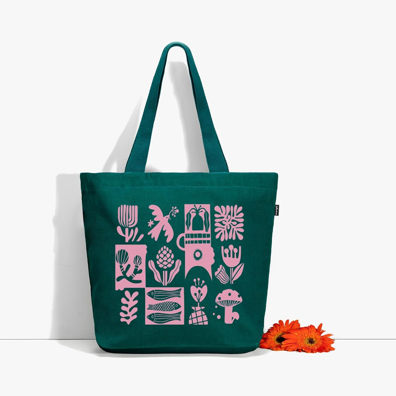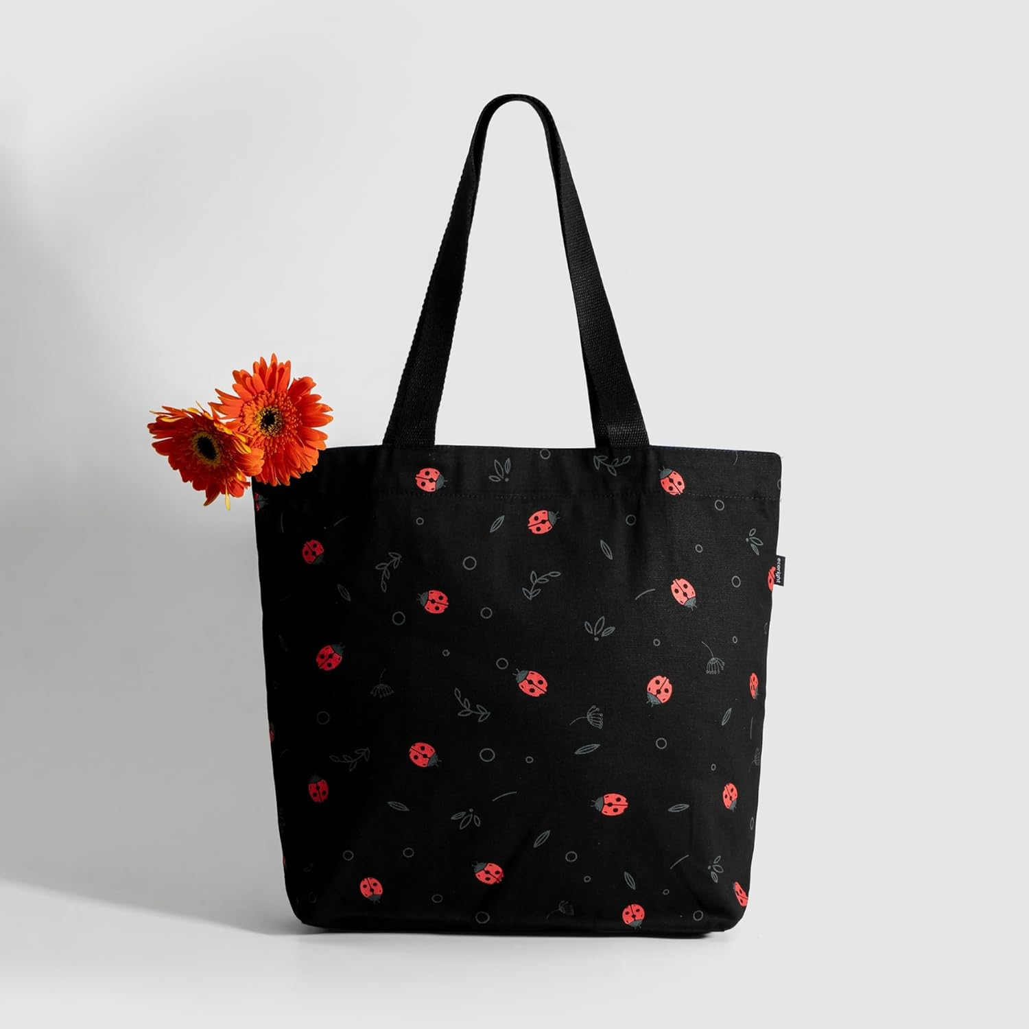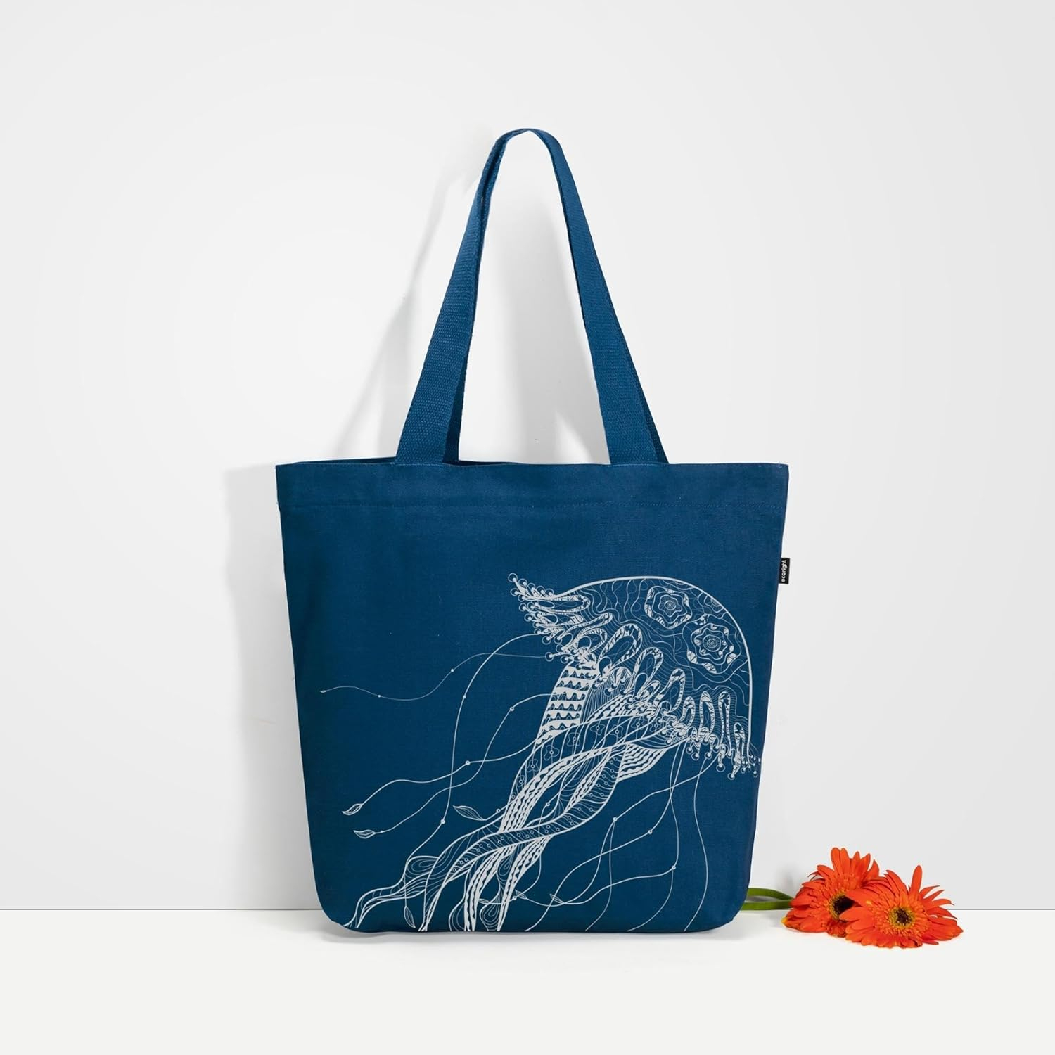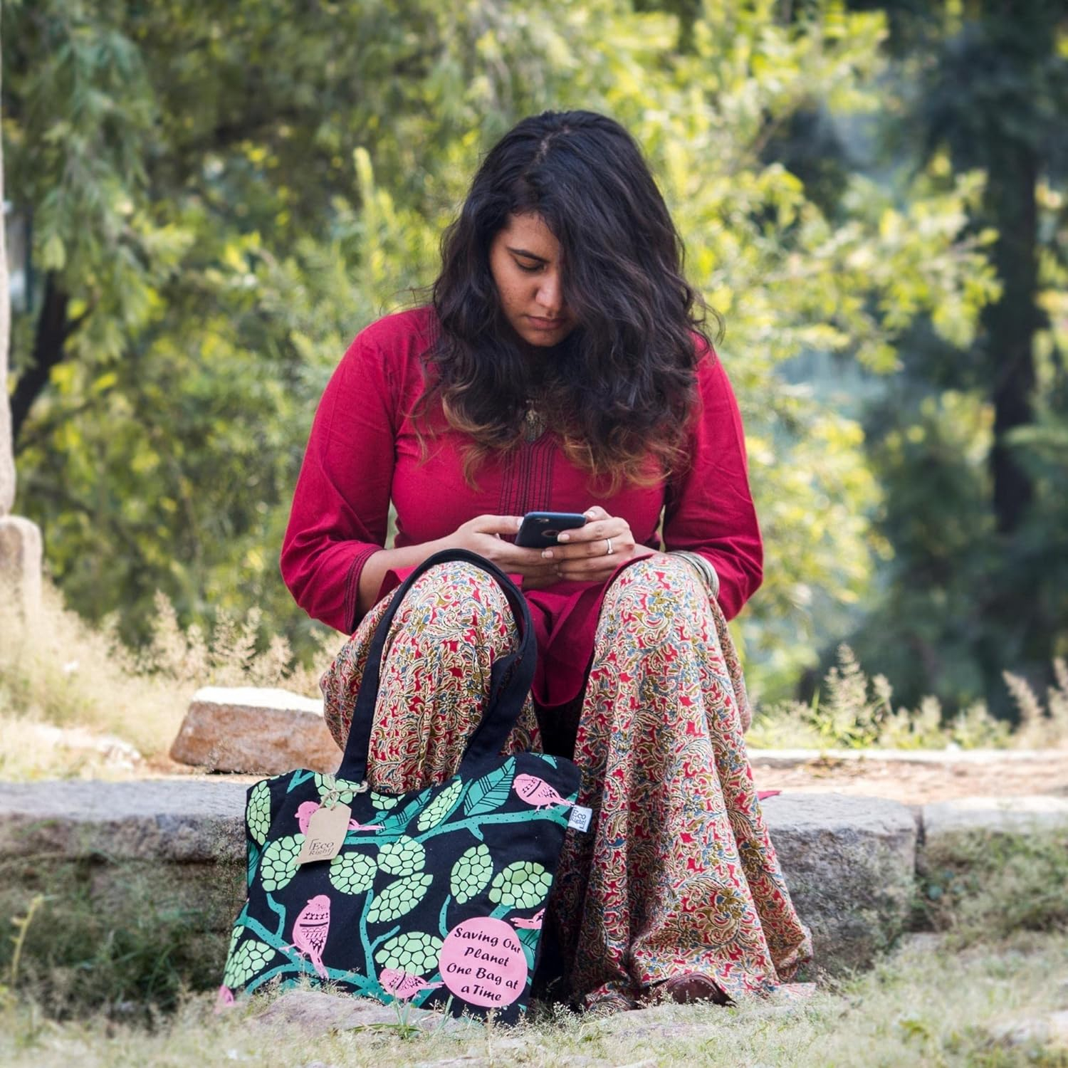 These large zipper tote bags for women are made from 100% canvas cotton with comfortable carry handles. Easy to store your essentials in one and comes with quirky & sassy prints. This multi-purpose tote is here to stay for the long run! Easy to wash and keeps up with all the wear and tear. Say no to plastic bags and carry your own reusable tote bags for shopping and day-outs with these stylish tote bags.