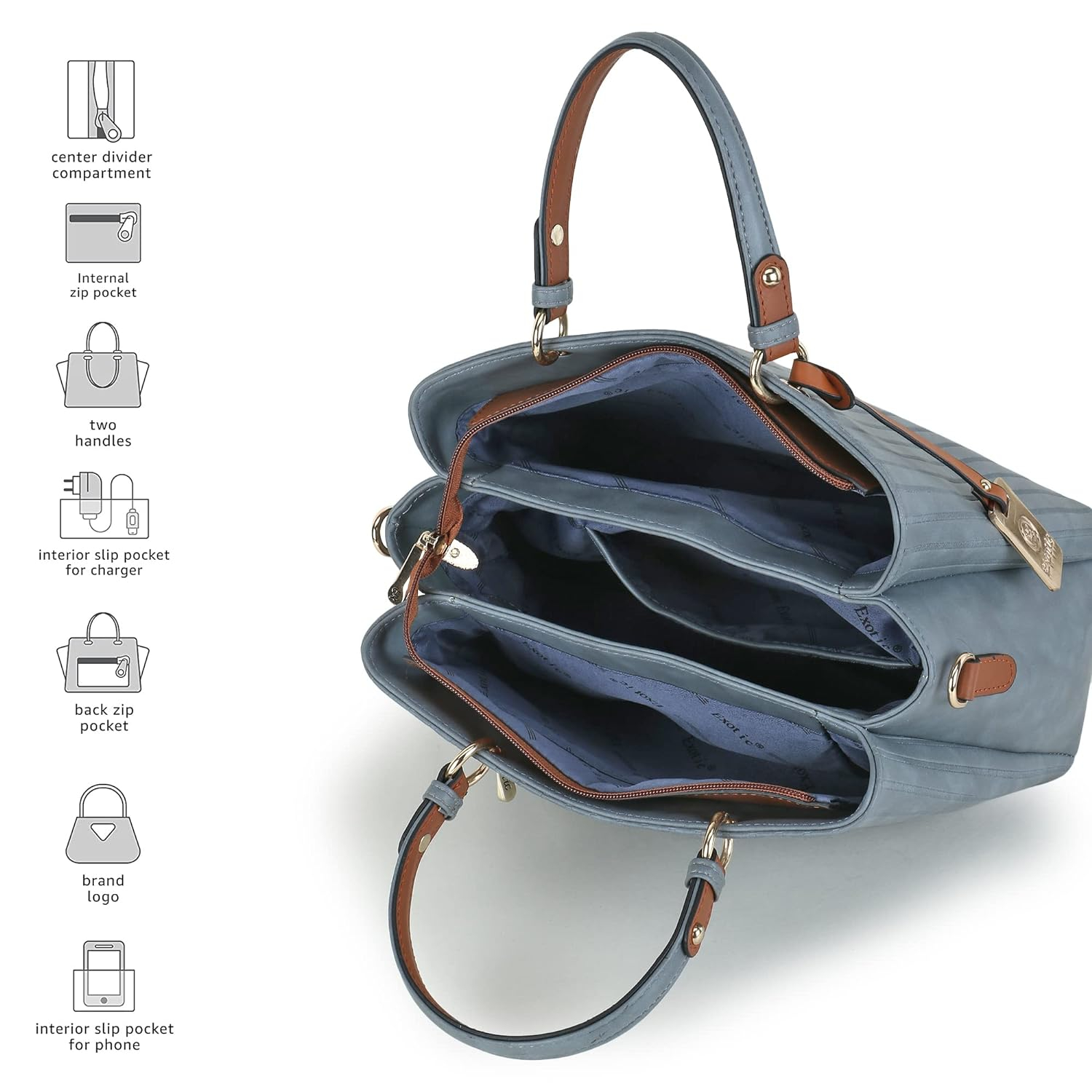 | Interior Compartments | The divided sections within the interior of the handbag that help organize and separate items. Tow Compartments include Five pockets, dividers, and slots. |