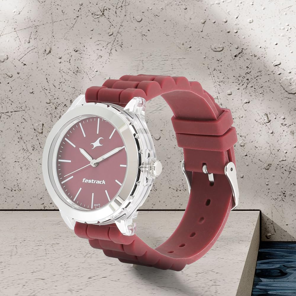 Fastrack’s Analog Watch For Women| Red Colour Watch| With Silicone Strap| Round Dial Watch| High-Quality Watch| Elegant Watch Design| Water Resistant Watch