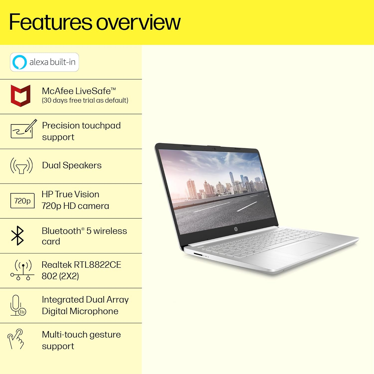 • 【Business conferencing】Elevate video calls with the HP True Vision 720p HD camera. Alongside temporal noise reduction and dual speakers, it allows clear communication and confident collaboration.