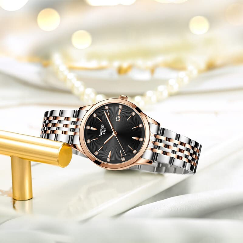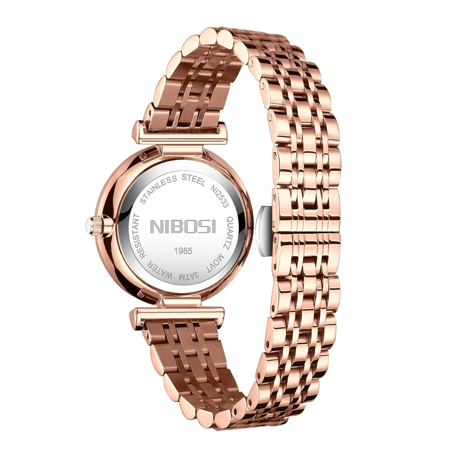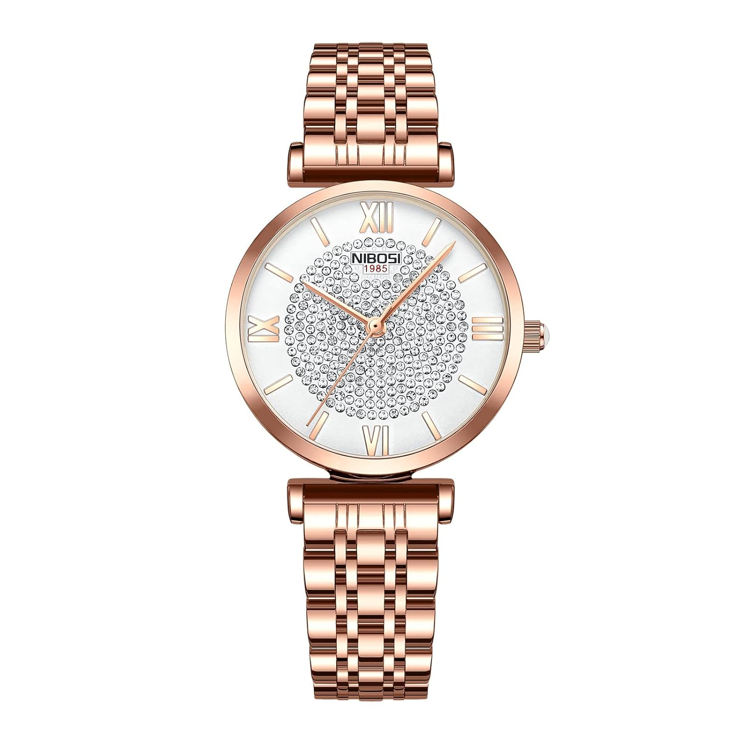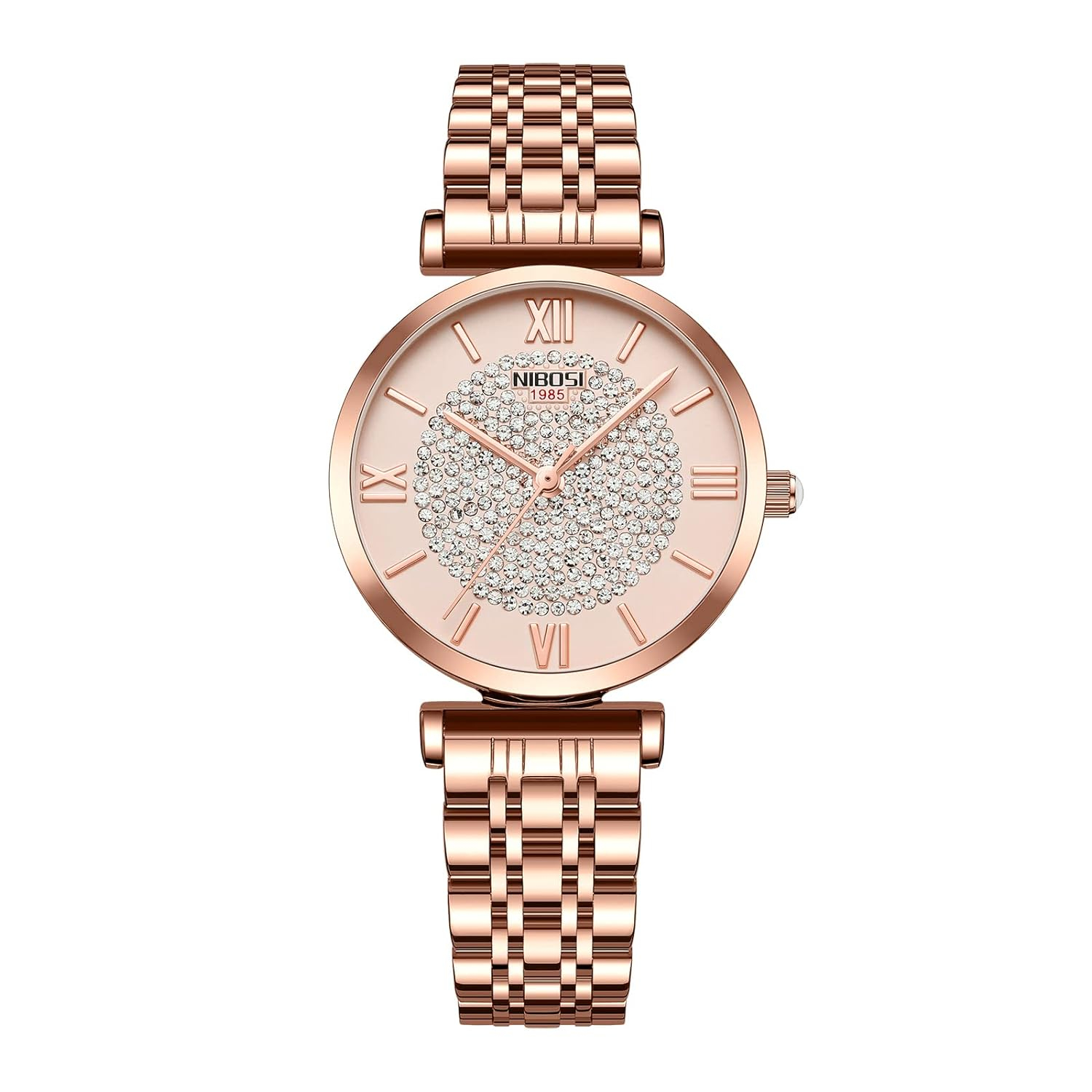 NIBOSI rose gold women watch is always stylish.The case is inlaid with crystal stones .This is a watch you can wear for years. Has an innate sense of glamour and a relentless pursuit of timeless fashion.