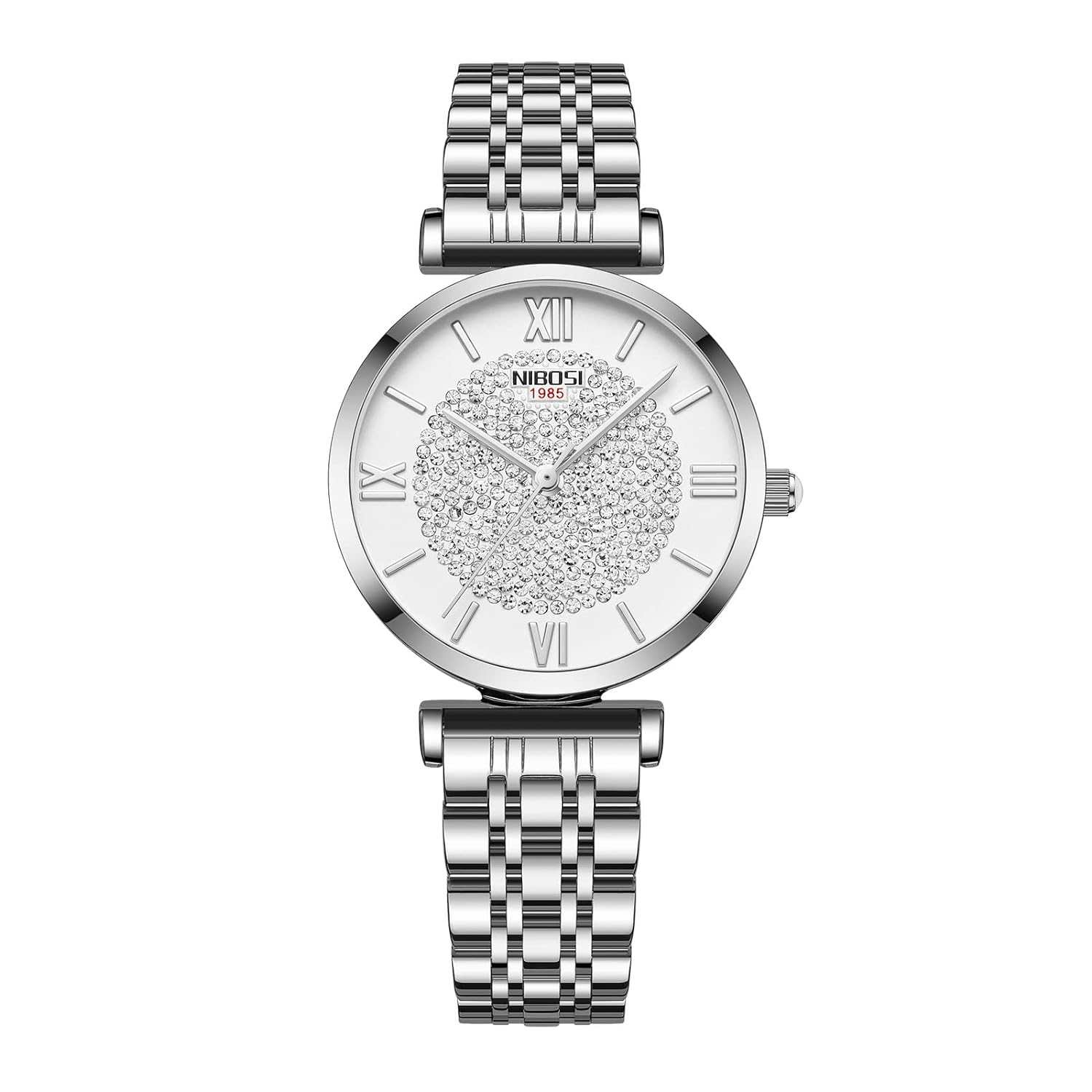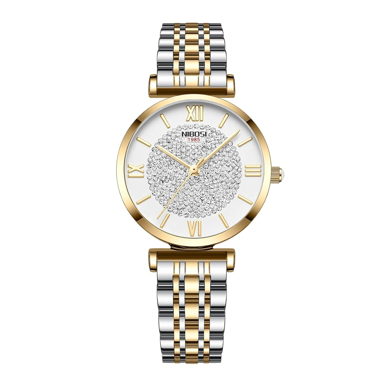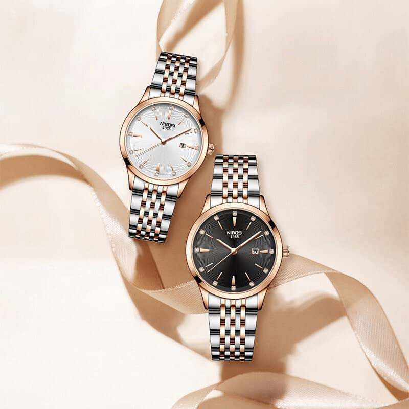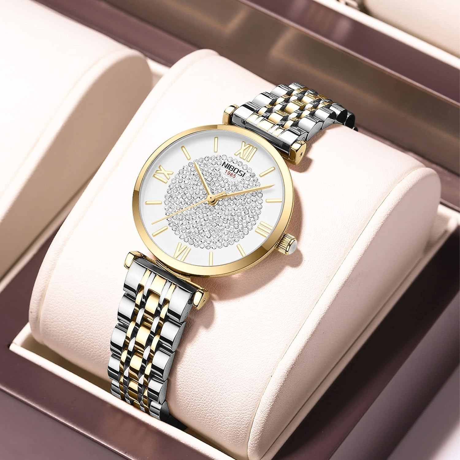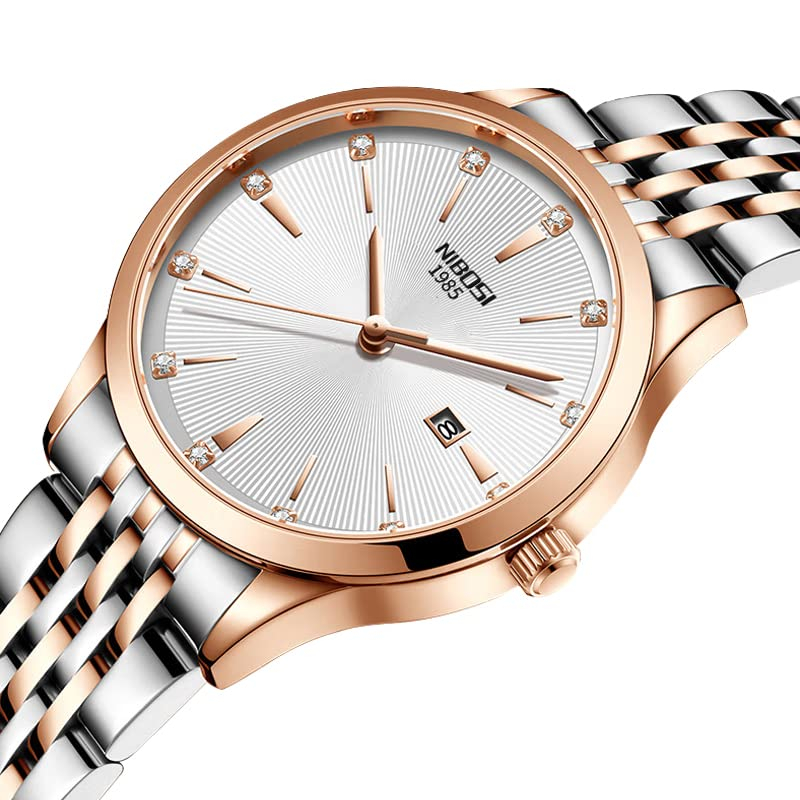 NIBOSI rose gold women watch is always stylish.The case is inlaid with crystal stones .This is a watch you can wear for years. Has an innate sense of glamour and a relentless pursuit of timeless fashion.