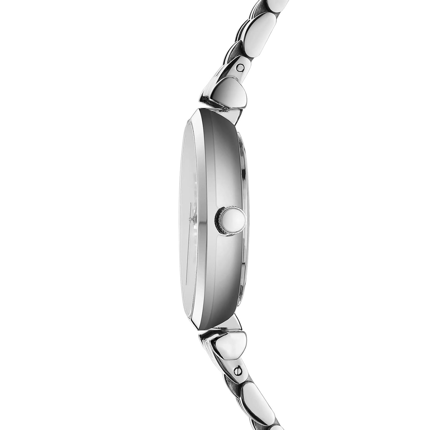 Featuring a 32 millimeter case diameter, 12 millimeter band width, 8 millimeter ultra-thin round dial, hardened scratch-resistant mineral crystal glass, stainless steel case material, 3 hand analogue Japanese quartz movement imported, strong closure that ensures not to slip-off.