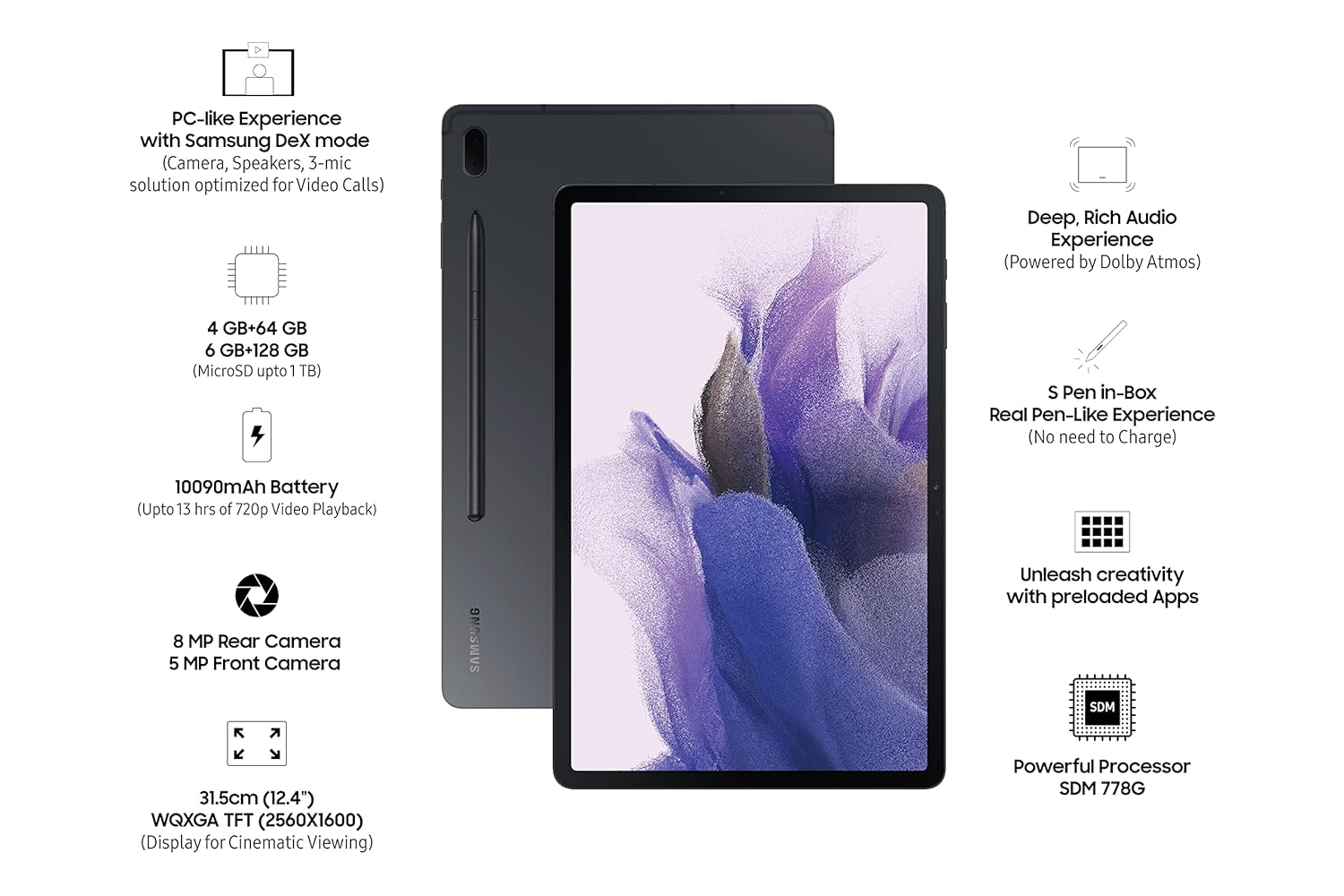 PROS : Got it in 2022 Diwali Sale @32k 4gb wifi blueFirst impression was premium. Very solid body and nice design.Screen quality is good. OneUI is awesome. S pen is very useful. Battery backup is good no idle draining issue and will cover up 3 days in hard productivity usage. 60fps videos works fine just miner and ignorable lags. Didn’t played any game yet but overall performance is very good with 778g chipset no leg faced yet in multitasking.CONS: felt uncomfortable while holding it for longer period.Weight increases with flip cover. Without book cover it’s a light tablet.Camera’s are below average (its a tablet isme aise hi milega)