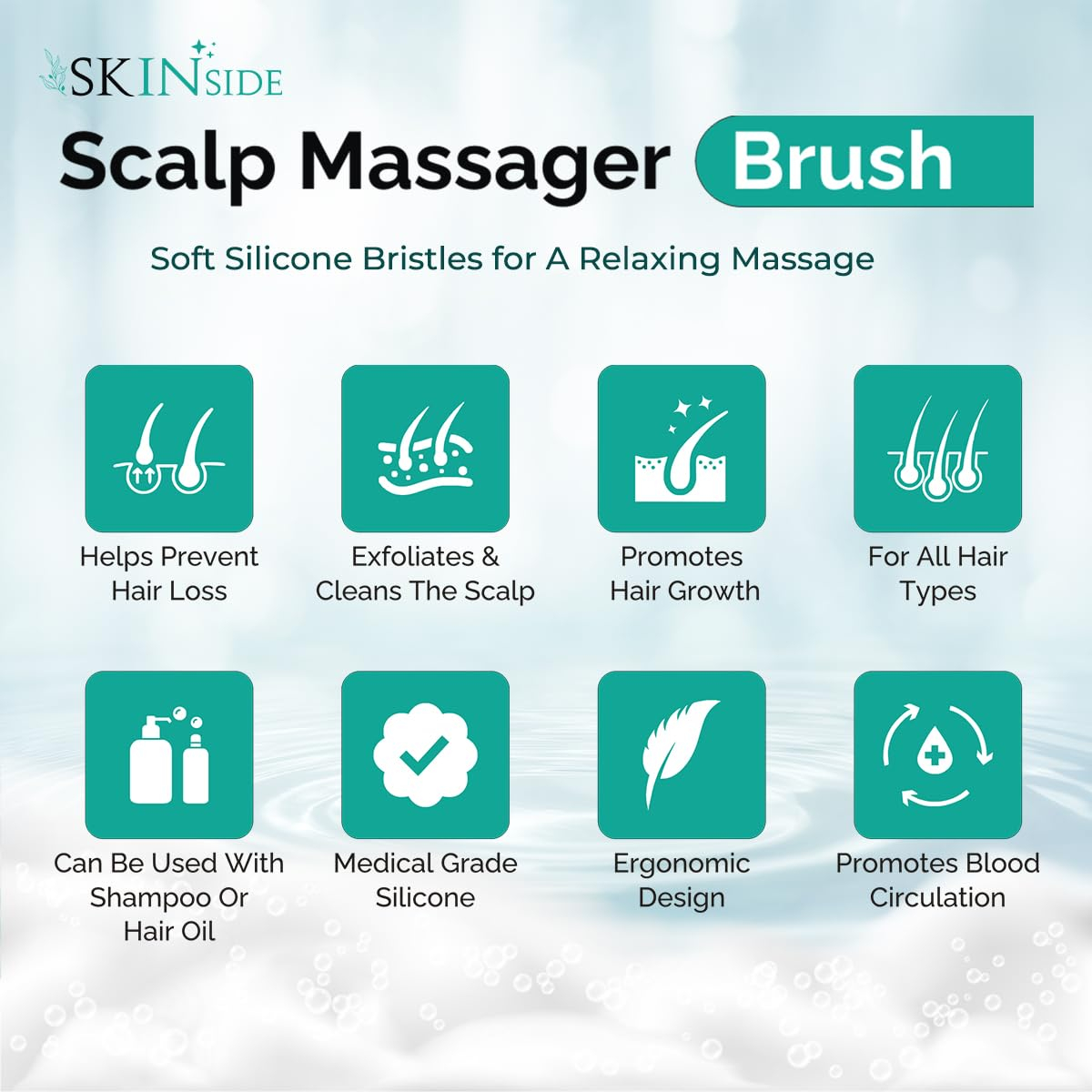 SkinSide Hair Scalp Massager for Hair Growth | Shampoo Brush Scrubber | Scalp Exfoliator | Oil Brush | Super Soft Silicone Bristles | Prevents Dandruff & Hair Loss (Regular|Any Color)