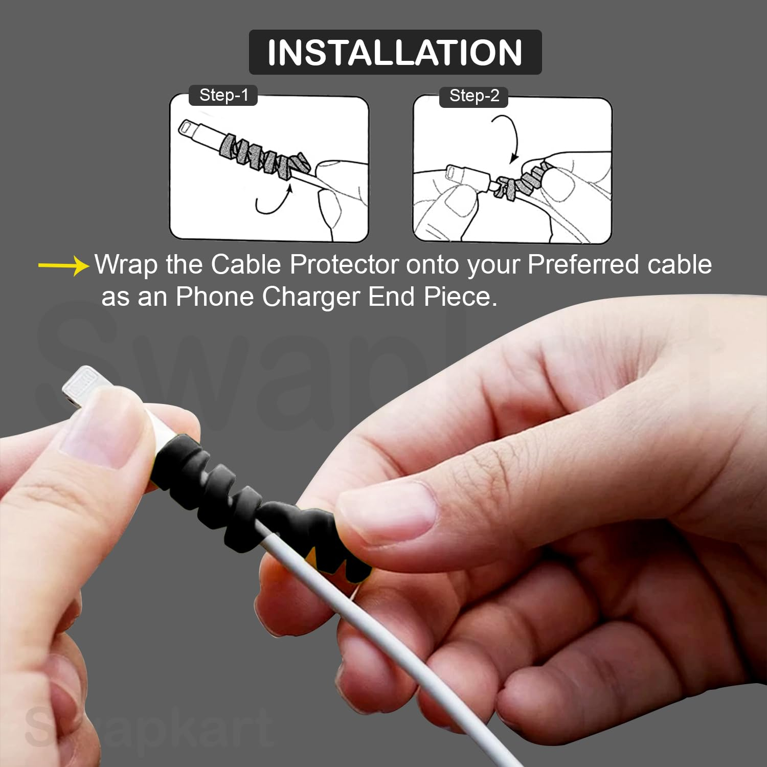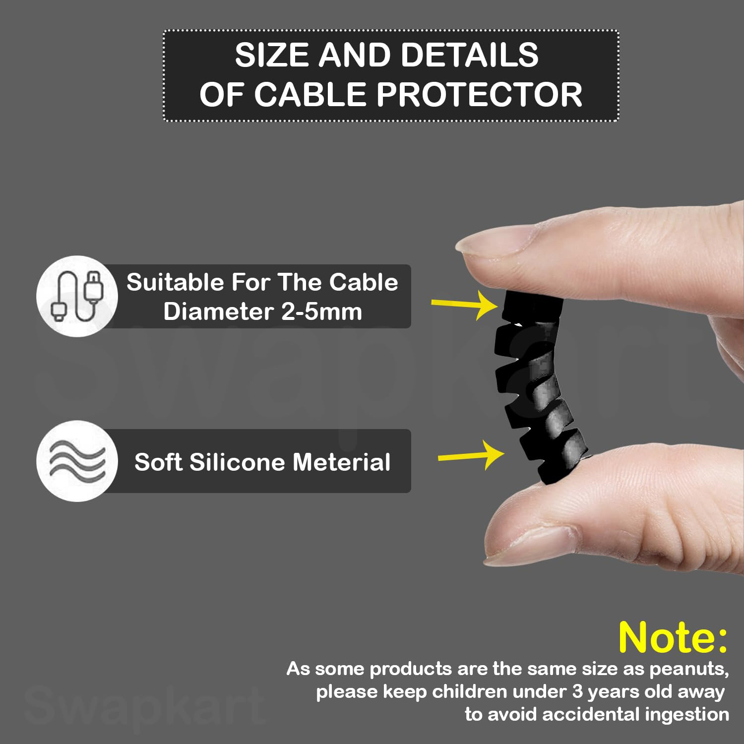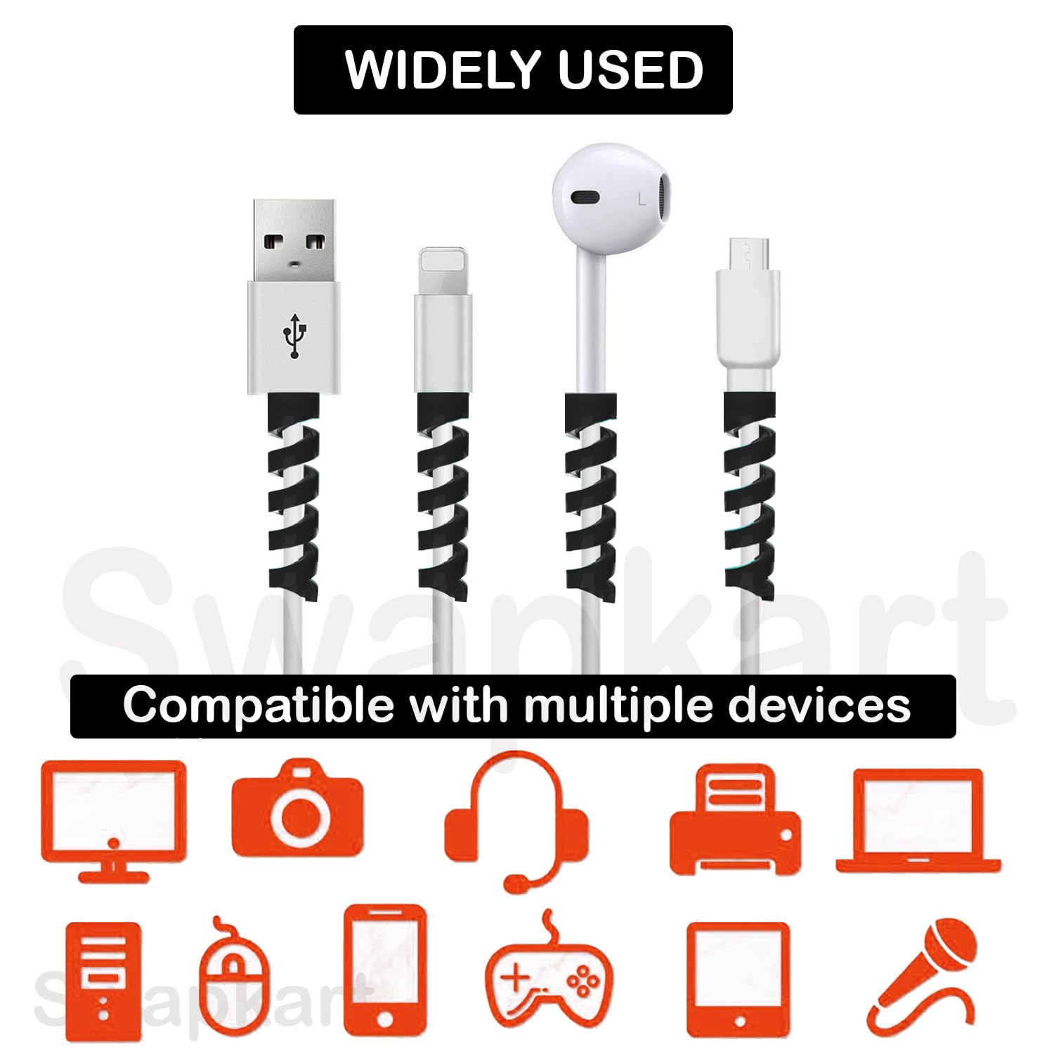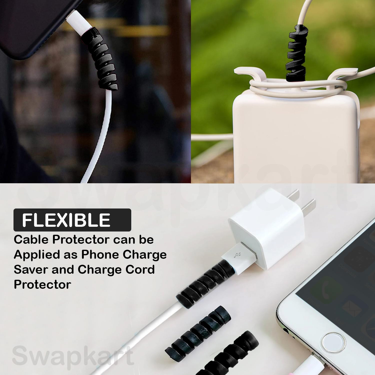 SWAPKART Multipurpose Protection Spiral Cable & Wire Protectors Spring Wire for All Wired Accessories for USB Charger Data Cable Earphone Elastic Cord Saver(Black)(12 pcs)
