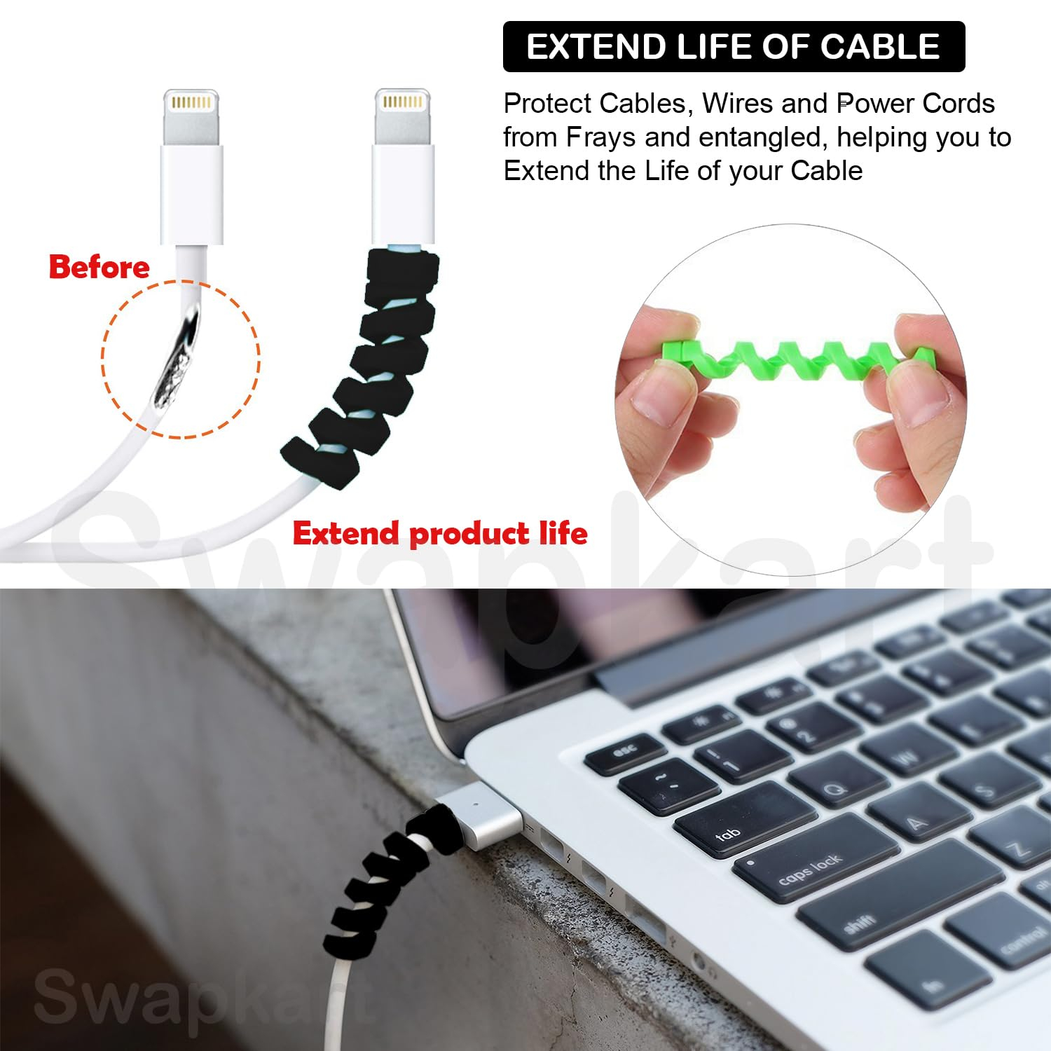 SWAPKART Multipurpose Protection Spiral Cable & Wire Protectors Spring Wire for All Wired Accessories for USB Charger Data Cable Earphone Elastic Cord Saver(Black)(12 pcs) – offers.shepays.com