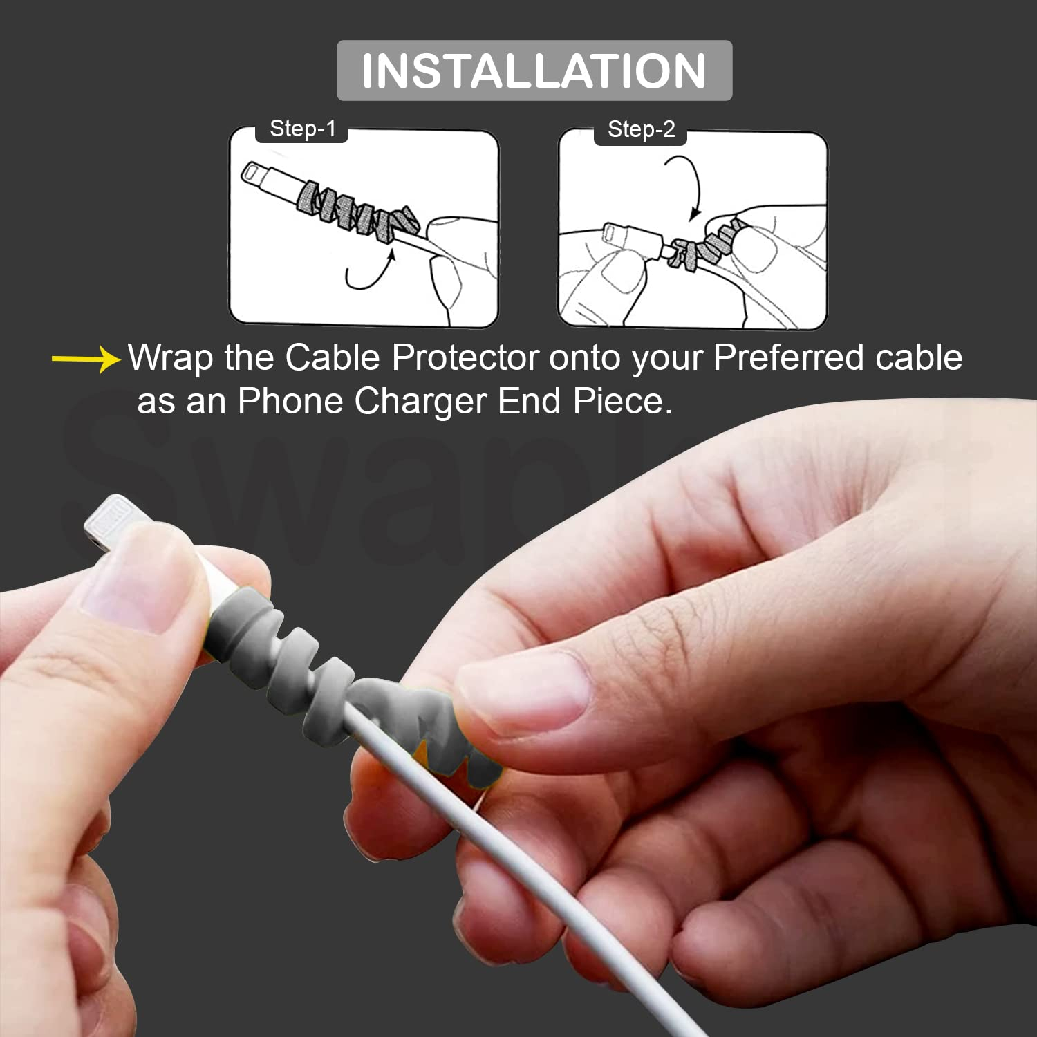• The Spiral Tube Charging Cable Protector is made of flexible silicone and is designed to protect the charging cables of a wide range of devices, including smartphones, laptops, Apple/Android watches, lightning cables, and more. By using these protectors, you can help to extend the lifespan of your device’s charging cables and prevent them from becoming frayed or damaged over time.