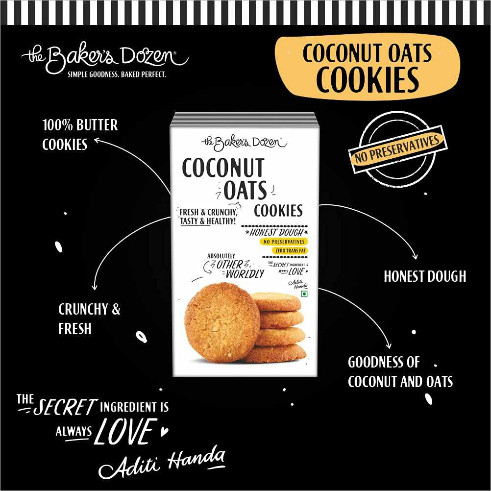 The Baker’s Dozen Handmade Coconut Oats Cookies | Delicious Fresh And Crunchy Cookies | Wholesome and Flavourful Treats | Preservative-free | Eggless | 150g | Pack of 1