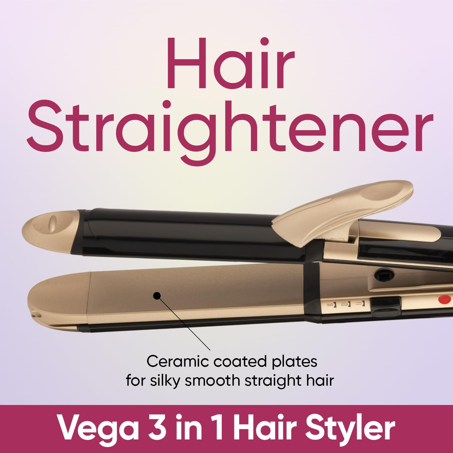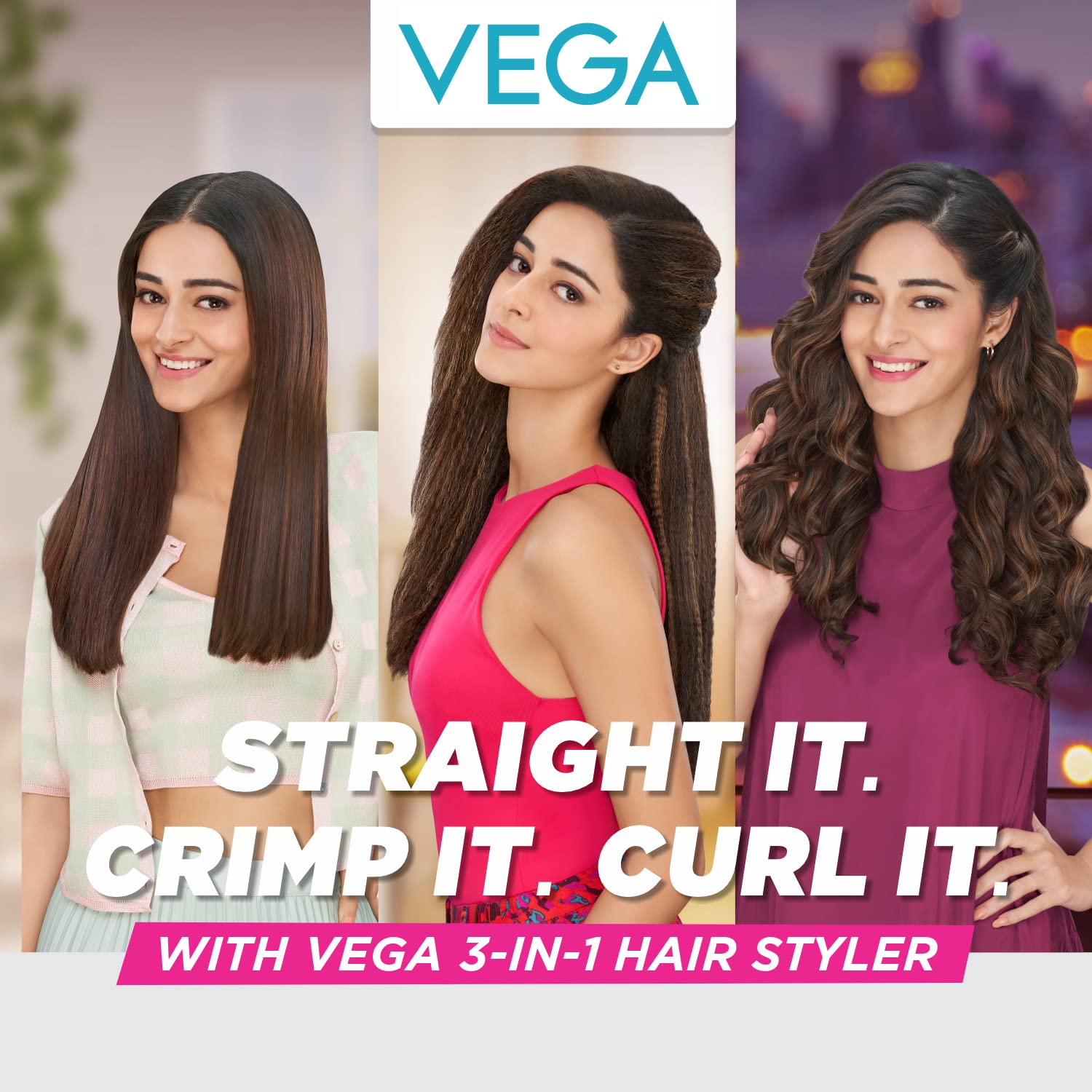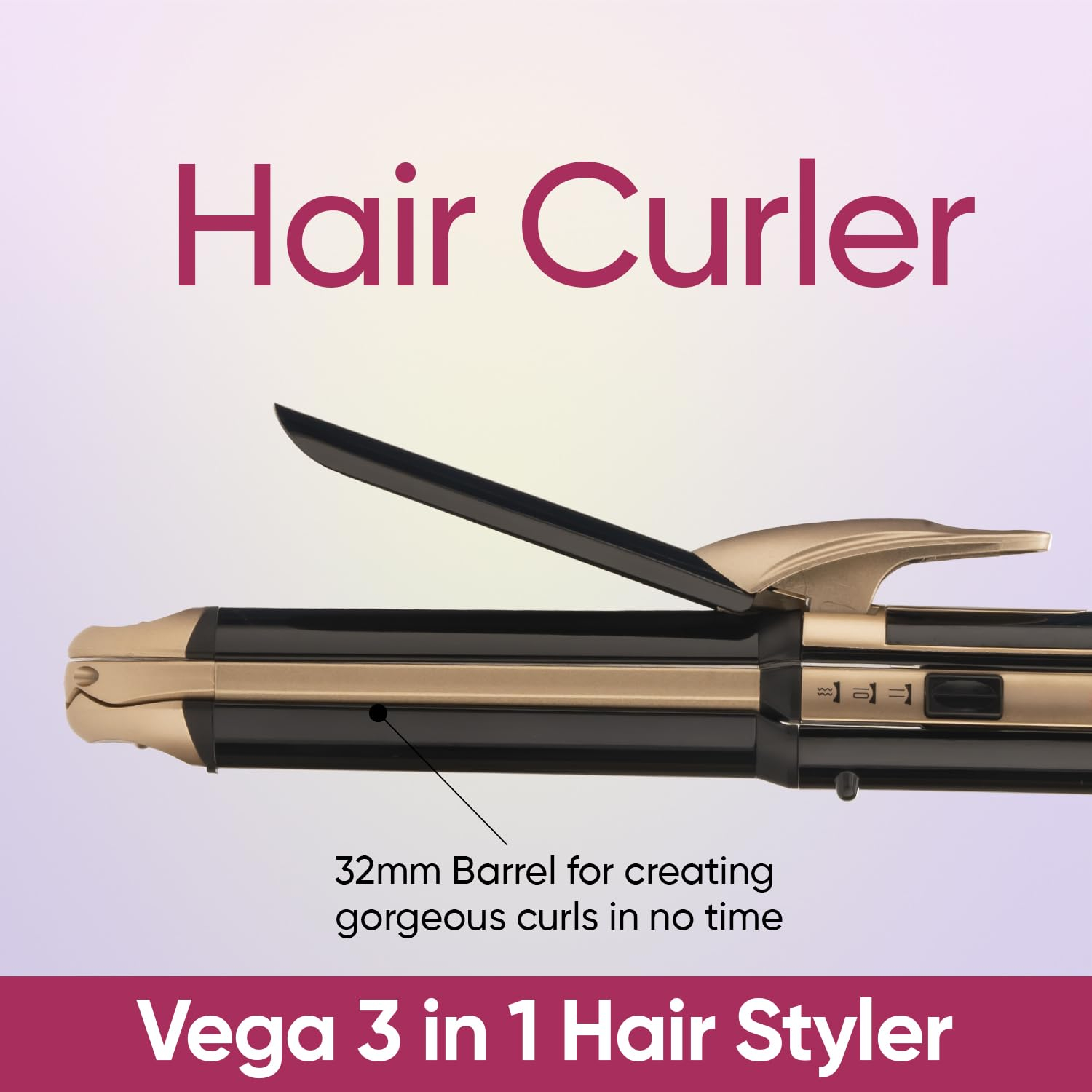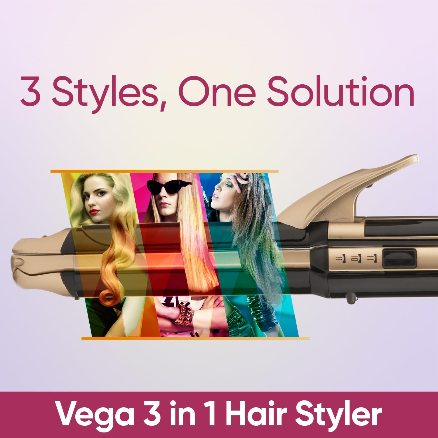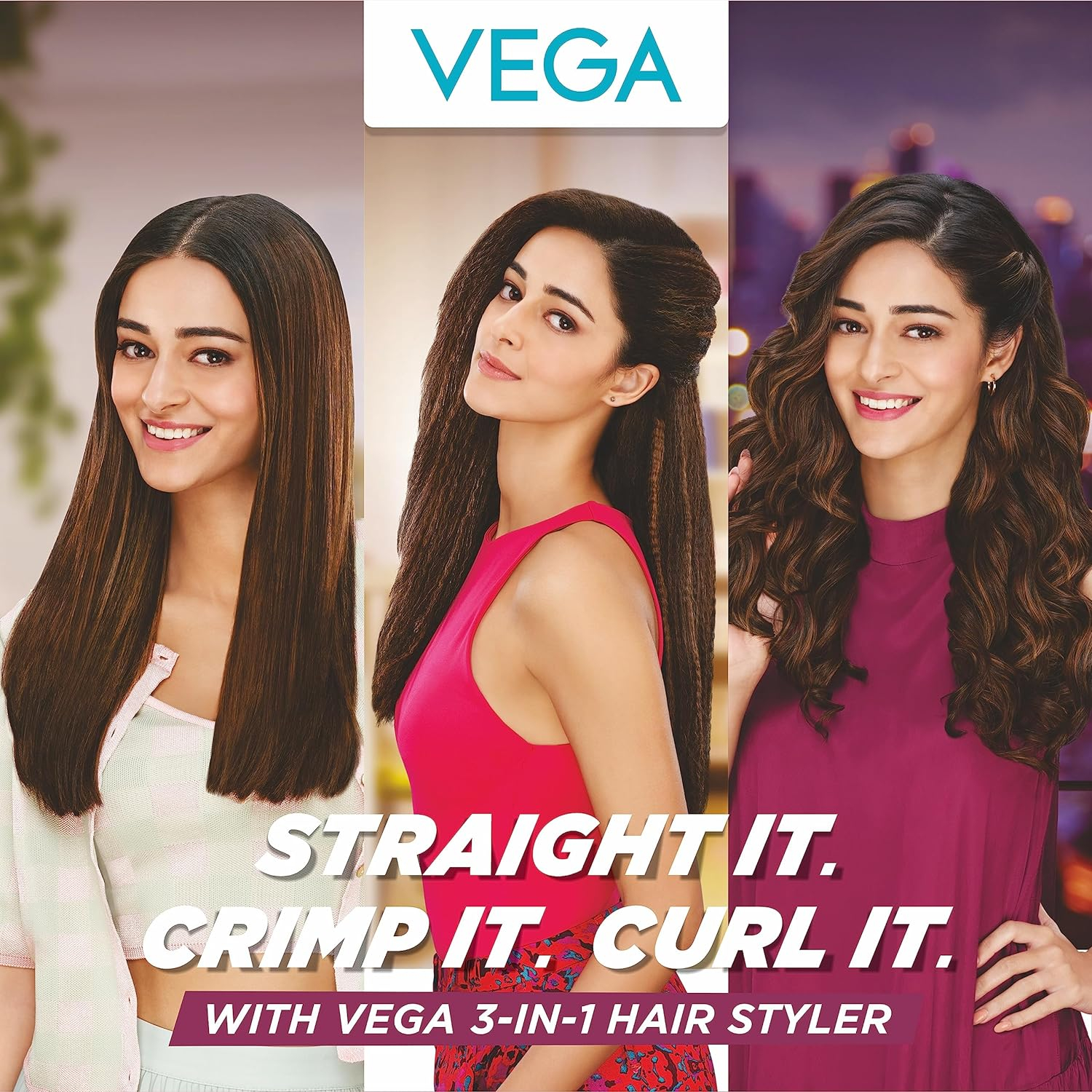 Vega 3 in 1 Hair Styler- Hair Straightener, Hair Curler & Hair Crimper