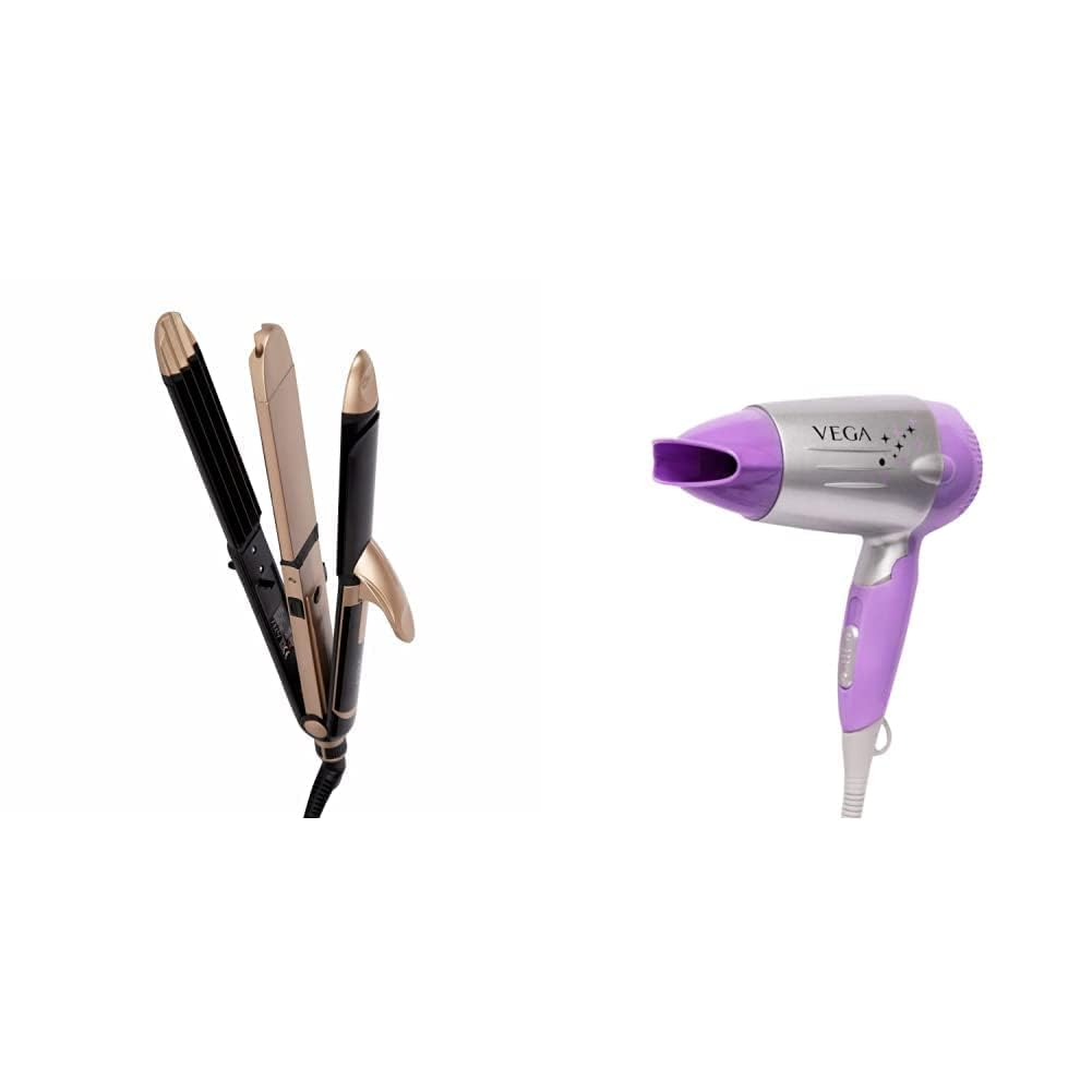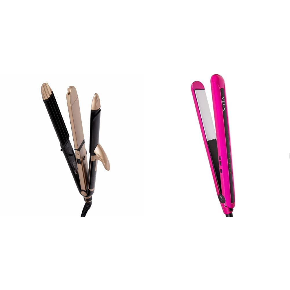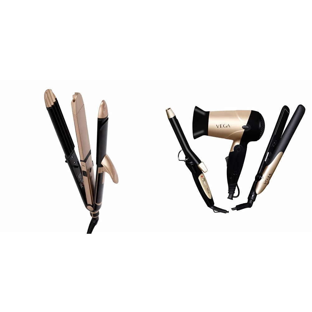 Now change your hair styling game with not just one but three ways using one hair styler. Create your favorite hairstyles- straight, curls, or crimped using Vega3 in 1 Hair Styler and flaunt a chic straight look, effortless curls, and gorgeous textured crimps. From a professional look to a party makeover, you can do it all using Vega Hair Styler which features a hair crimper, hair curler machine, and hair straightener. This 3 in 1 styler is the perfect styling tool for every on-the-go. It has straightening plates, crimper plates, and curling iron for creating a plethora of hair looks. This all-in-one styling device for women has one styling button to switch to three different looks with a salon-like finish, that too in the comfort of your own home.