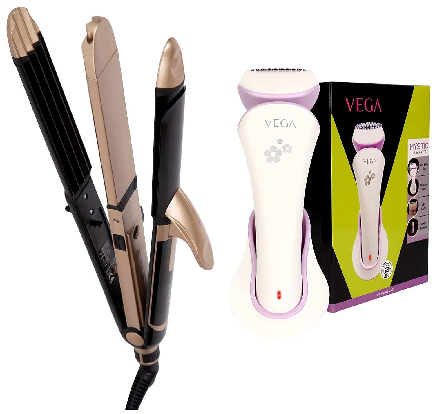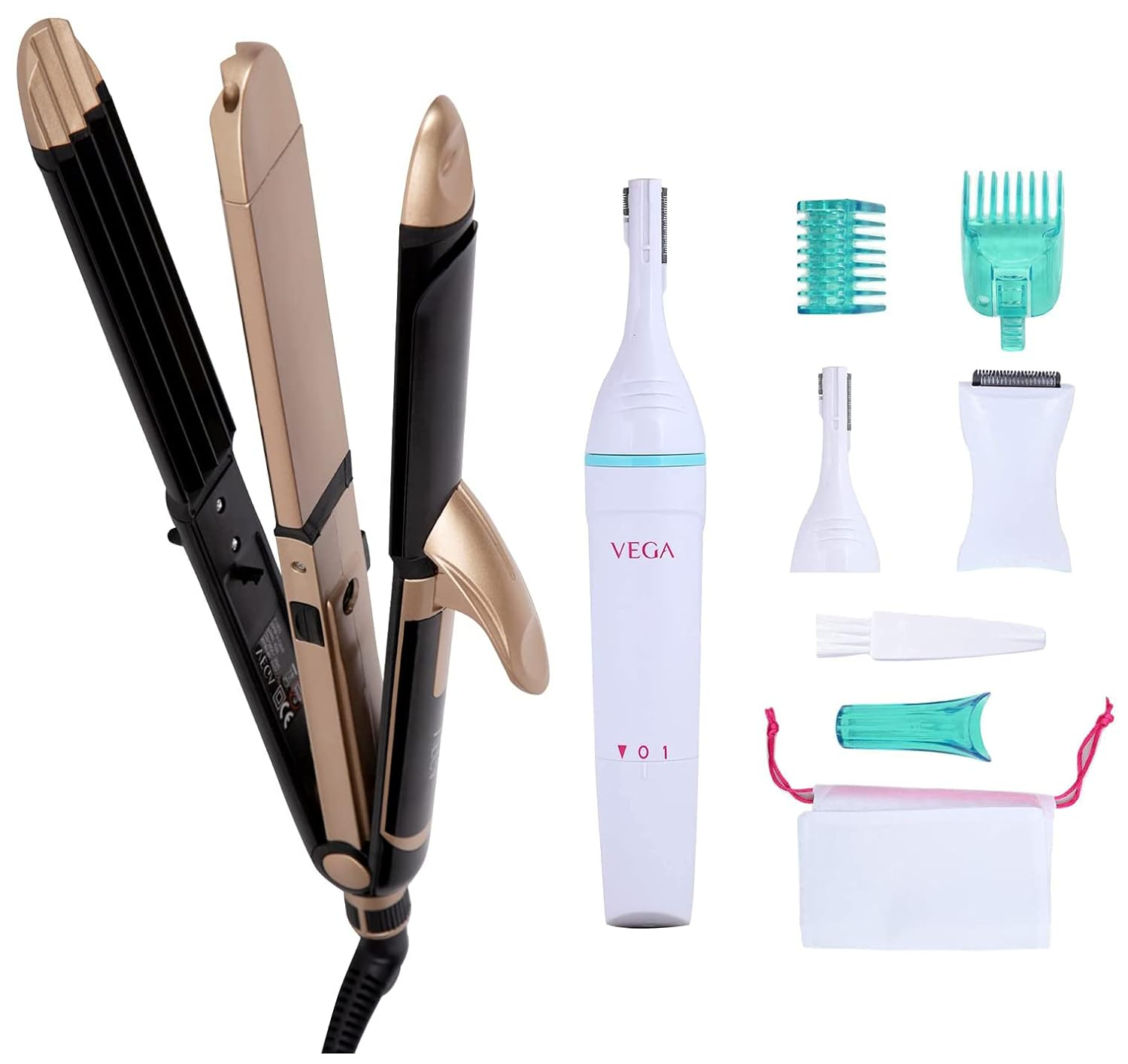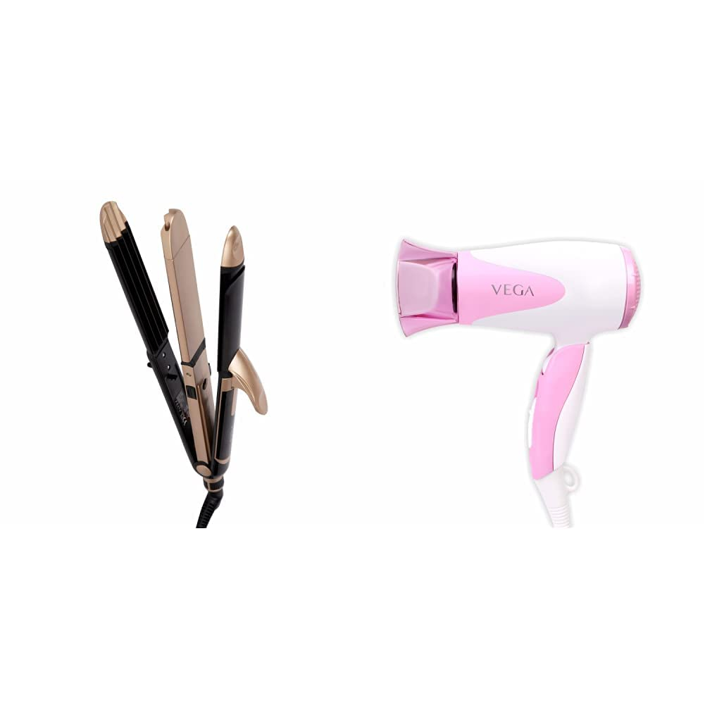 Now change your hair styling game with not just one but three ways using one hair styler. Create your favorite hairstyles- straight, curls, or crimped using Vega3 in 1 Hair Styler and flaunt a chic straight look, effortless curls, and gorgeous textured crimps. From a professional look to a party makeover, you can do it all using Vega Hair Styler which features a hair crimper, hair curler machine, and hair straightener. This 3 in 1 styler is the perfect styling tool for every on-the-go. It has straightening plates, crimper plates, and curling iron for creating a plethora of hair looks. This all-in-one styling device for women has one styling button to switch to three different looks with a salon-like finish, that too in the comfort of your own home.