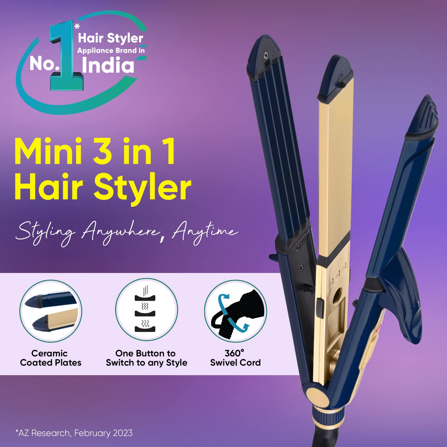 Nice Product with 5 ? out 5This 3 in 1 Mini Hair Styler is a small, lightweight, and portable hair styling tool that can be used to straighten, curl, or crimp hair. It is a good option for people who are looking for a versatile hair styling tool that they can take with them on the go.The hair styler has a ceramic coating on the plates, which helps to protect the hair from damage. It also has a 360° swivel cord, which makes it easy to use.I have been using the Vega 3 in 1 Mini Hair Styler for 2 days now, and I am overall impressed with it. I have found that it works well to straighten my hair, and it also does a good job of curling my hair. I like that the hair styler is small and lightweight, so it is easy to store and carry with me.