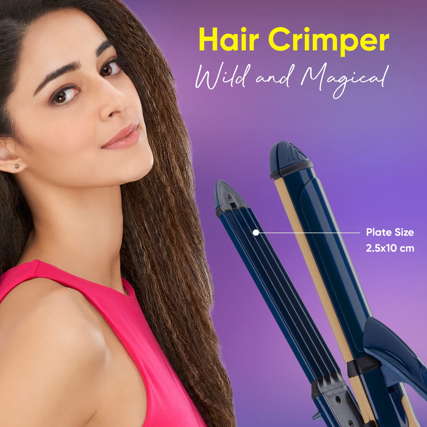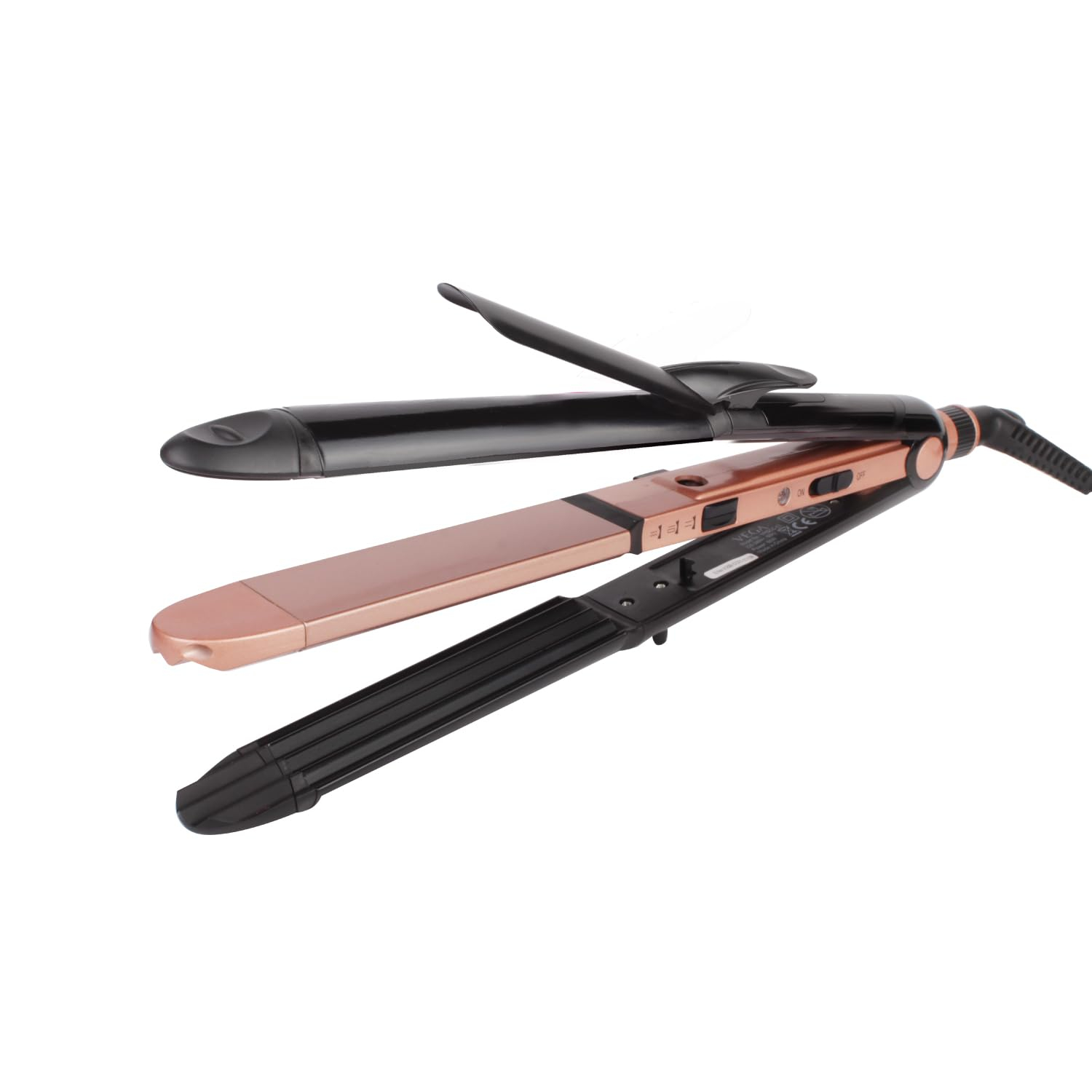 • 3 In 1 Hair Styler Combines The Features Of A Hair Straightener, Hair Curler, And Hair Crimper For Creating Silky Straight Hair, Defined Curls, And Textured Crimps. The Multi-Functional Hair Styling Tool Is Designed To Create Three Different Hairstyle – Sleek Straight Hair, Natural Curls And Textured Crimped Effect.