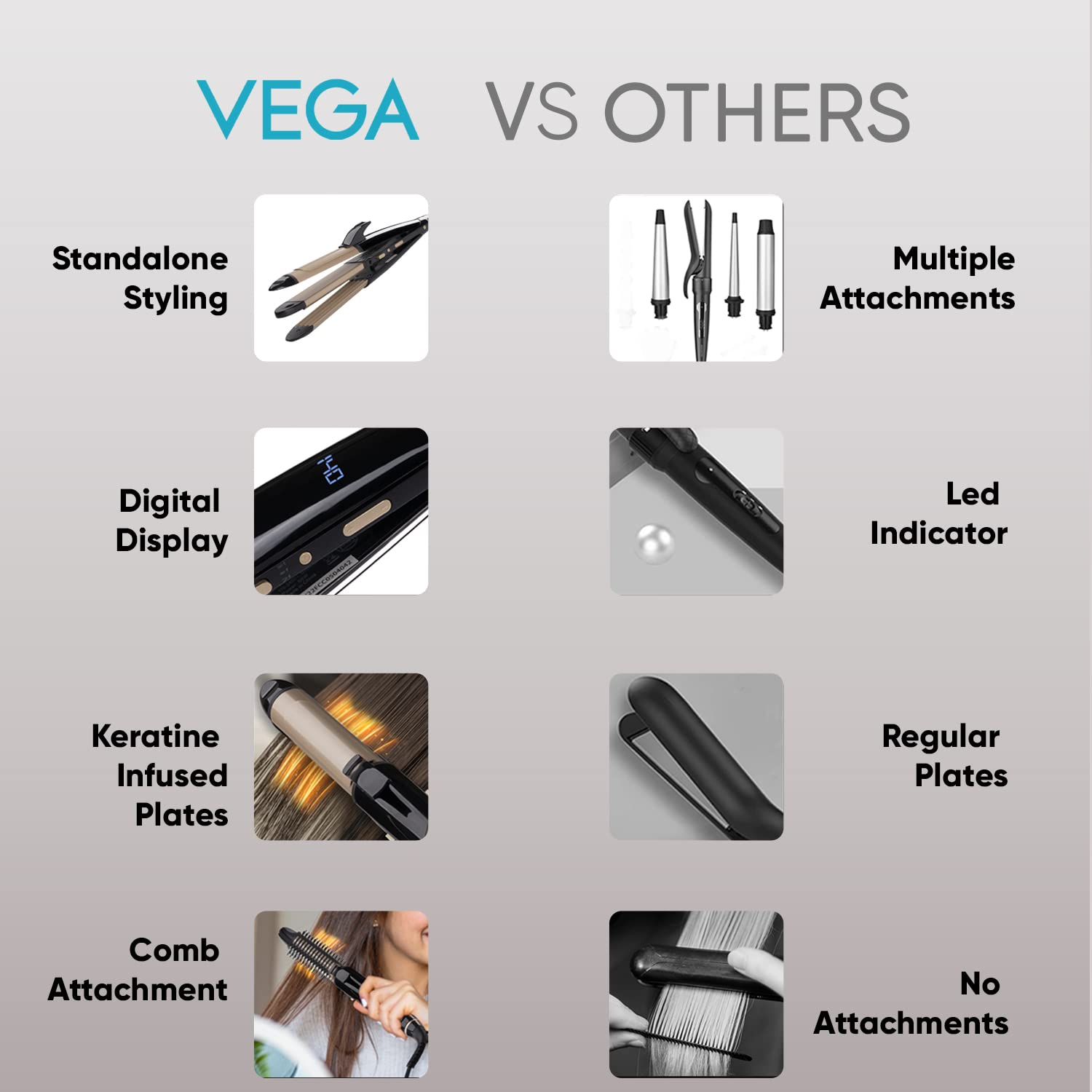 10 reviews for Vega 3 in 1 Hair Styler, (India’s No.1* Hair Styler Appliance), Hair Straightener, Curler & Crimper, VHSCC-01, Black